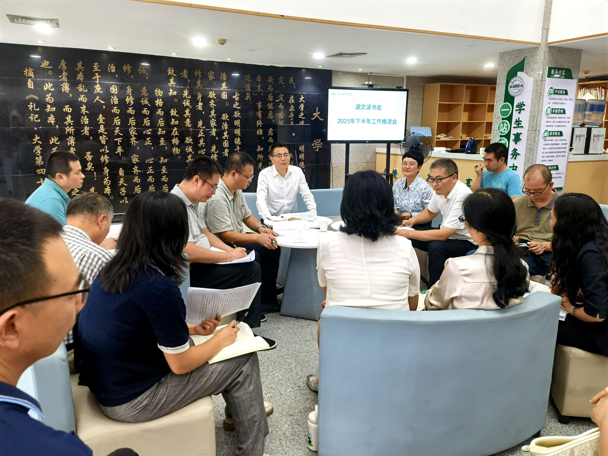 (襄阳历史文化研究院 通讯员 靳进)9月9日,“湖文读书会”2025年下半年工作推进会在图书馆二楼德园举行。学校党委书记吴超仲、副校长秦军荣出席,党委副书记王瑶珺主持会议。