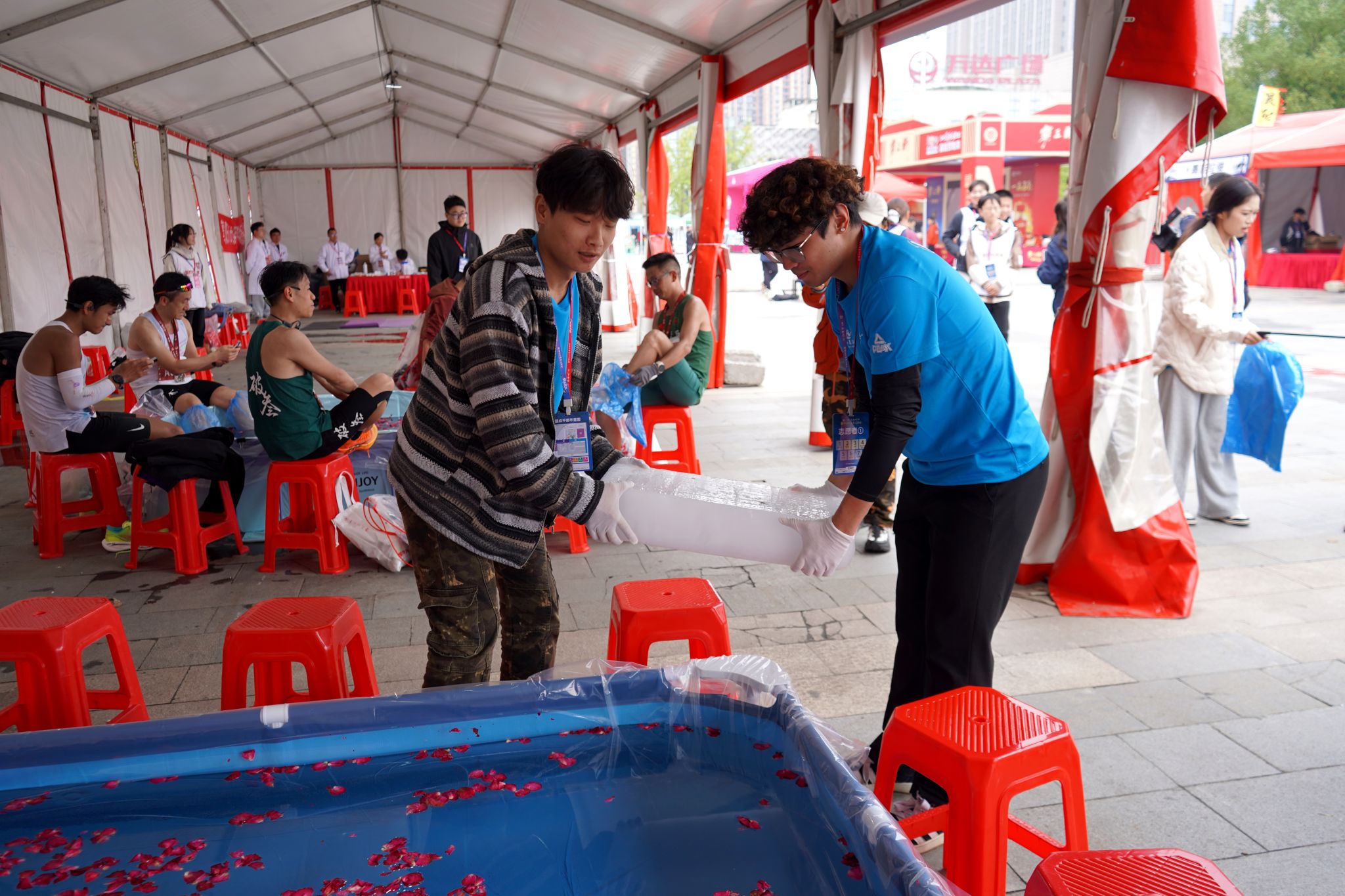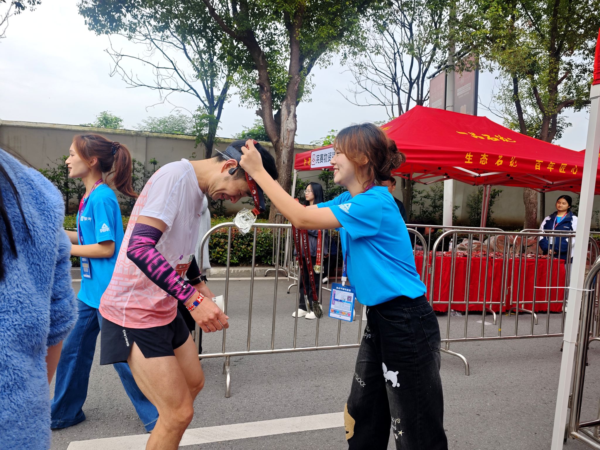 赛道内外,湖文志愿者服务赛事身影随处可见。