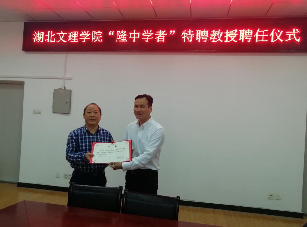 聘任仪式上,宋成亮介绍了胡钊政教授的基本情况,胡钊政教授现场签订了聘任协议,人事处处长苏顺强为胡钊政颁发聘书。
