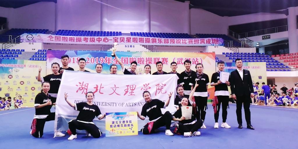 (体育学院 通讯员 王美楠 杨扬继翔)近日,2018-2019年全国啦啦操联赛(武汉站)暨2019湖北省普通高等学校大学生啦啦操赛于5月10-12日在武汉东湖学院举行。我校代表队在体育学院教师王美楠的带领下,获公开青年乙组集体自由舞蹈自选动作第一名,公开青年乙组花球校园啦啦操示范套路(2016版)第二名的好成绩。