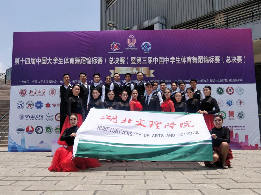 (体育学院 通讯员 林万雷)由中国大学生体育协会主办的第十四届中国大学生体育舞蹈锦标赛总决赛于5月11日至12日在昆明学院体育馆举行。我校体育舞蹈代表队在领队许志琳,教练员林万雷、段子玉的指导下,24位运动员共斩获6项冠军、7项亚军和8项季军。至此,我校代表队已连续三年蝉联中国大学生体育舞蹈锦标赛四项全能和六项全能冠军。