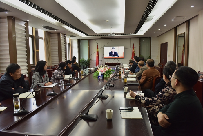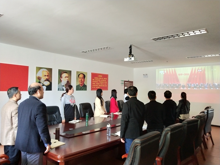 学校领导、党委委员、纪委委员在行政楼第三会议室集中收看,机关党委工作人员在图书馆一楼多功能厅集中收看,各二级学院组织师生在会议室、教室、学生寝室、实验室等收听收看纪念大会,团学骨干在“格桑花之家”展厅集体收看。