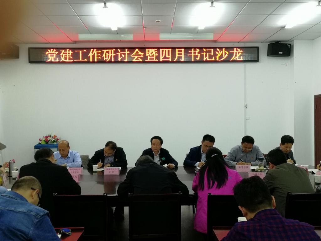 (组织部 通讯员 陈媛)4月19日下午,学校在工科楼机械工程学院会议室举行四月党建工作研讨会暨 “书记沙龙”,各分党委、直属党总支(党支部)书记、党群部门负责人、党支部书记代表参加会议。会议由副校长王为一主持。