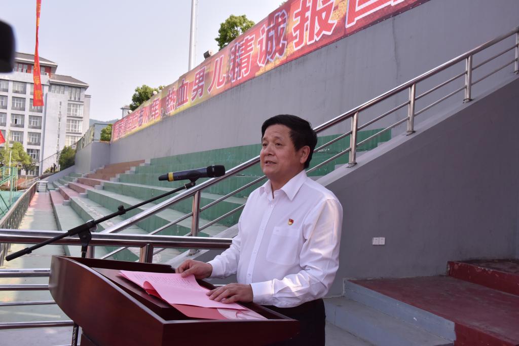 丁世学在讲话中指出,学校历来高度重视国防宣传教育工作,把做好征兵工作作为学校对祖国、对人民的责任与担当,与中心工作同部署、同落实、同要求,形成了一套符合校情、行之有效的征兵工作机制,连续四年被评为全省“征兵工作先进高校”。他强调,当前大学生参军入伍恰逢其时,国防和军队现代化建设召唤着我们,身边的优秀事迹激励着我们,自身的长远发展鞭策着我们。他号召全校学生乘着大好时光去当兵,书写绚烂、无悔的青春篇章。