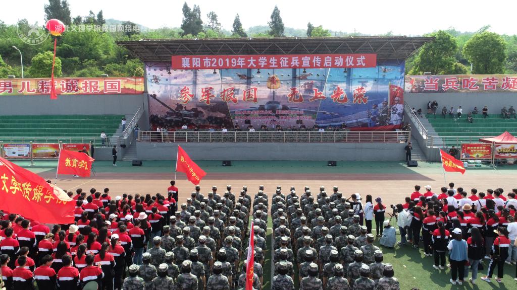 (学工处 通讯员 赵琪)4月18日下午,襄阳市2019年大学生征兵宣传启动仪式在我校北区田径运动场举行。副市长丁亚琳,市委宣传部副部长李宏音,襄阳军分区副司令员、市征兵办公室主任陈国良出席启动仪式。襄阳职业技术学院、襄阳汽车职业技术学院、湖北文理学院理工学院等高校领导和襄阳四所高校武装部负责同志,我校3000余名师生参加此次活动。启动仪式由襄阳军分区政委贾国文主持。校长丁世学出席活动并讲话。