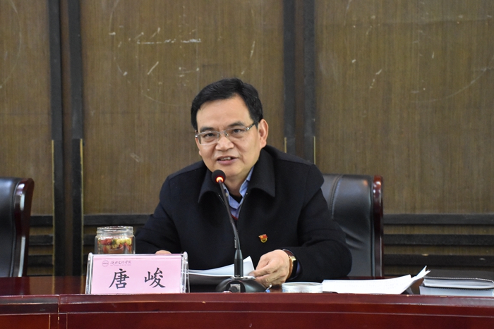 唐峻指出,广大干部要用马克思主义的世界观、方法论来分析、认识、把握和处理学校发展问题。学校事业越往前发展,出现的矛盾就越来越多,遇到的困难就越来越大,需要我们从更高的视角,运用更科学管用的方法来认识、处理、把握和解决。唐峻指出,马克思主义立场就是人民的立场,是进步、正义、公正的立场;马克思主义的观点是唯物的、辩证的、历史的、阶级的观点,是讲长远、讲根源、讲发展、讲趋势的观点;运用矛盾分析的方法分析学校的问题,就可以从扑朔迷离的诸多问题中找出一条清晰的主线。全校干部要加强马克思主义修养,更多、更好、更深地掌握马克思主义的立场、观点和方法,努力使我们的政治敏感度更高一些,思维视野更广一些,思想境界更高一些。