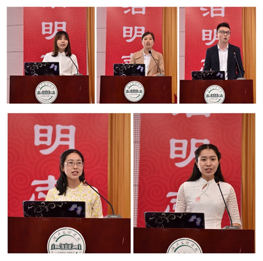 报告团成员蔡明镜、李晶、黄春立、彭荣、李雪萍分享任教经历
