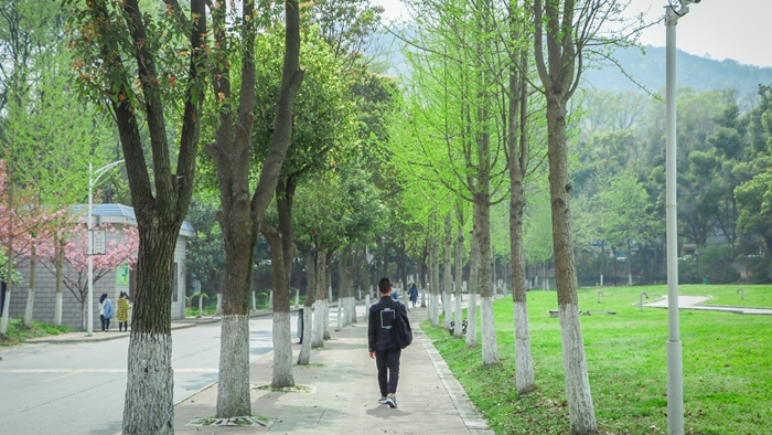 人间四月天,一树一树的花开,一树一树的绿,点亮了春色,浸染了校园。