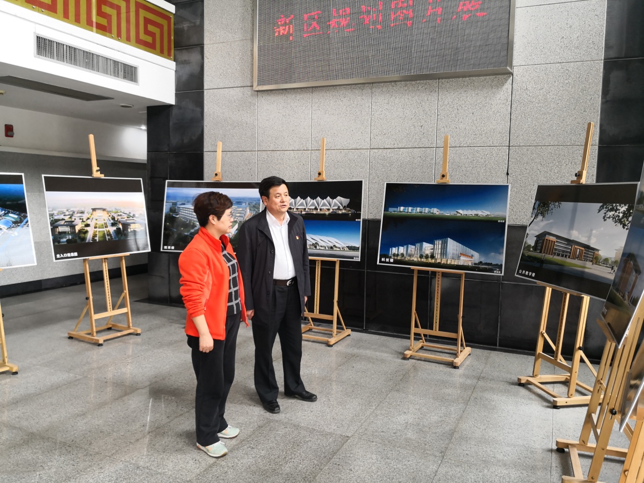 李静参观了我校新校区规划图片展,丁世学重点就新校区的整体布局、规划设计、新校区迁建情况等进行了介绍。