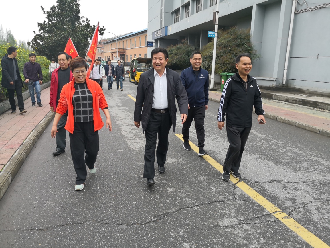 上午10点,在襄阳四中校长李静带领下,两千余名师生徒步到达我校,校长丁世学热情接待了李静一行。