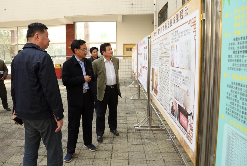 唐峻、丁世学和与会代表参观学校学科竞赛成果展 (图片由通讯员提供)
