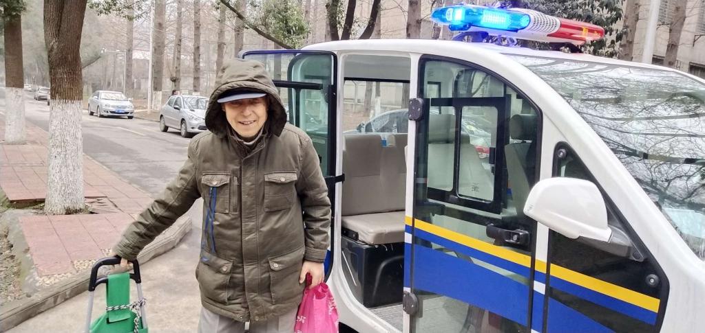 校园巡逻车接送老人 图由保卫处提供