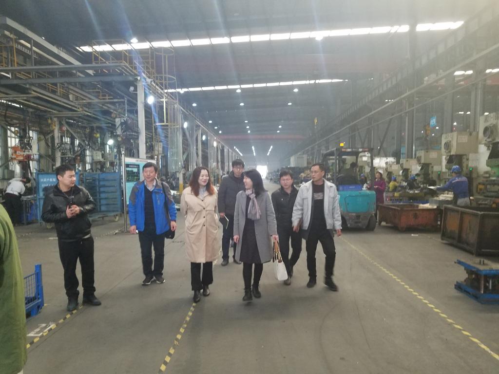 在光瑞公司总经理杨柳等人的陪同下,汪云一行实地参观了公司车身冲压生产线和焊接生产线。双方就进一步促进产学研合作进行座谈交流。在座谈会上,光瑞公司技术部负责人对公司的基本情况、主要产品、客户、销售业绩、发展规划等作了介绍,参与调研的教师与企业技术研发人员重点围绕“某重型卡车前保险杠冲压成形褶皱”“汽车车身件冲压回弹量”“铝合金板的冲压工艺”“标致某型号排气管端口冲压开裂”“铝合金件冲压整型滑移线”“焊接过程中虚焊的防范及检测”等具体技术进行交流和探讨,达成初步合作意向。