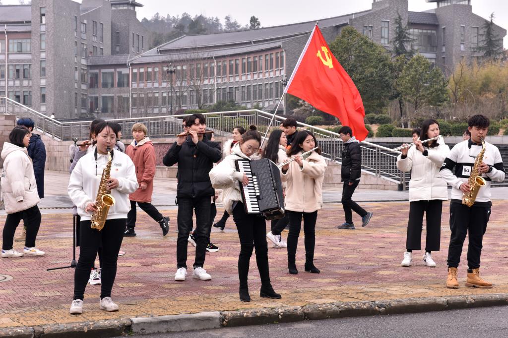 (音乐与舞蹈学院 通讯员 徐小浩)3月5日是毛泽东同志“向雷锋同志学习”题词56周年纪念日,为激励青年大学生弘扬爱国主义精神,践行社会主义核心价值观,由宣传部、校团委、音乐与舞蹈学院、青年志愿者协会等共同举办“弘扬雷锋精神绽放青春活力”主题系列快闪活动在卧龙广场激情上演。