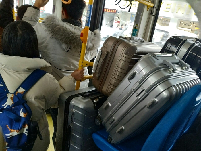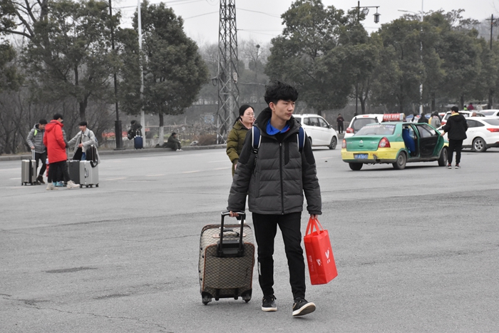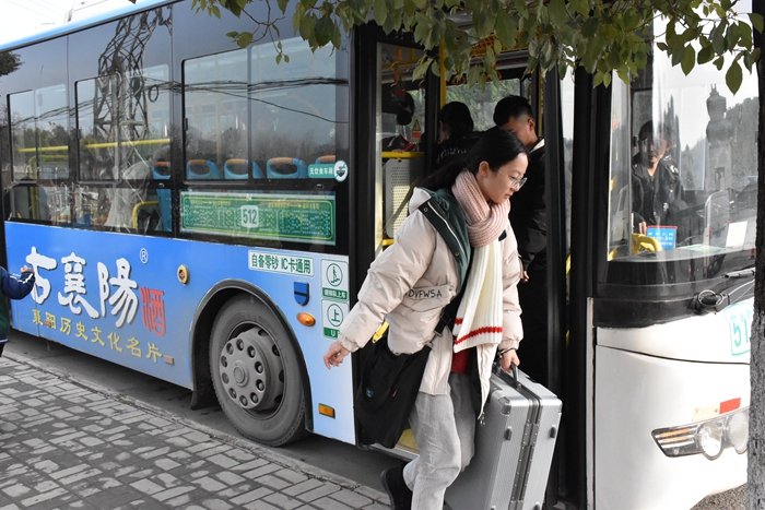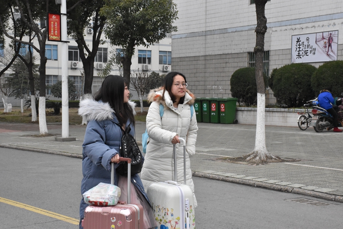 拖着沉重的行李箱,乘坐熟悉的512,同学们又回到温暖熟悉的地方——湖北文理学院(李梦肖供图)