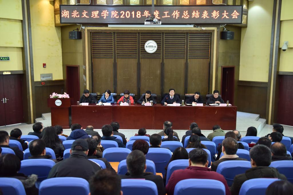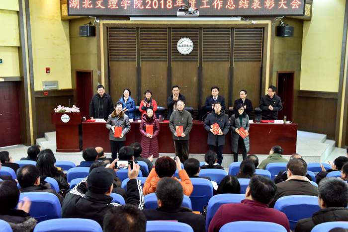 会上,刘伦钊宣读《湖北文理学院关于表彰和奖励2018年度先进单位和先进个人的决定》。校领导为获奖的先进单位和先进个人代表颁发荣誉证书。获奖单位代表文学与传媒学院院长刘群、教务处处长张樊分别作交流发言。