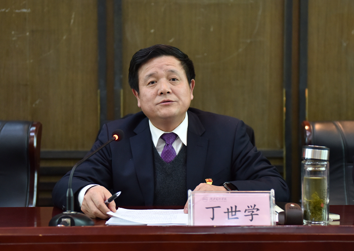 丁世学对2018年度的考核结果作出说明,就寒假期间认真落实全面从严治党主体责任、加强党风廉政建设、研究确定学校2019年目标责任制考核管理办法及指标体系、研究确定学校2019年财务开源节流的总体方案、各类科研项目及科研成果申报和跟进、人才引进、走访慰问、开学前的各项准备、水电供应和饮食保障、综合值班等重点工作进行安排部署。