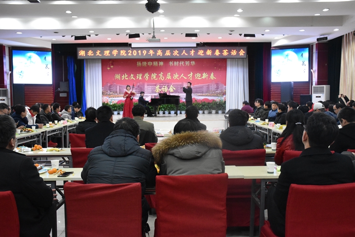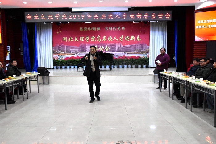 当晚,音乐学院多功能厅洋溢着欢乐热烈的气氛,校领导唐峻、丁世学、宋双伟、刘伦钊,教授和博士代表,各二级学院和相关职能部门负责人等90余人欢聚一堂,话发展、迎新春。