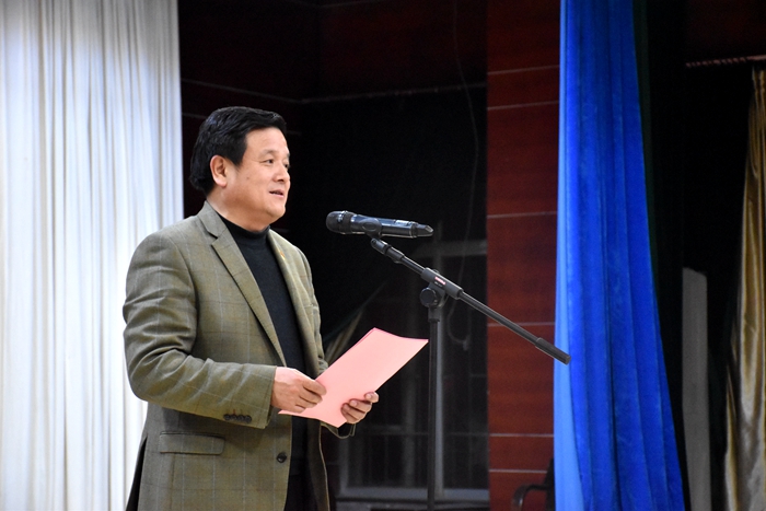 丁世学发表热情洋溢的致辞。丁世学说,2018年对于学校来说是意义非凡的一年,我们过得很充实、走得很坚定,经历了栉风沐雨齐奋进,迎来了硕果盈枝满庭芳。2018年,学校认真落实人才新政,努力打造区域人才高地,51名教授博士、5名高层次人才倾情加盟,助推学校新发展。丁世学强调,学校发展凝聚着全体师生的智慧和心血,我们将进一步巩固学校事业发展成果,坚持把师生的美好期盼作为学校一切工作的出发点和落脚点,全面推进综合改革,抢抓发展机遇,在提质提效上狠下功夫,促进学校事业高质量发展。