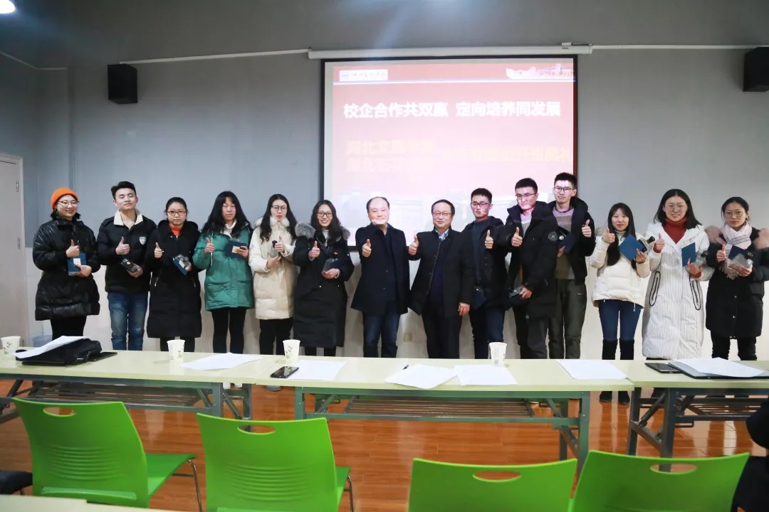 曹卢波发表致辞。他首先对湖北文理学院提供校企合作产学研共建平台以及同学们对石花酒业的信任与支持表示感谢,他希望学员们能够珍惜在校学习的机会,顺利完成学业,同时也珍惜共建班的平台和机会,侧重实际操作,多学社会知识,多练职业本领。曹卢波说,大学之大,在大师;企业之大,在强人。他期盼在座的同学们能够顺利通过共建班考核,在毕业的时候能够选择石花酒业,在良好的平台上实现未来的梦想。
