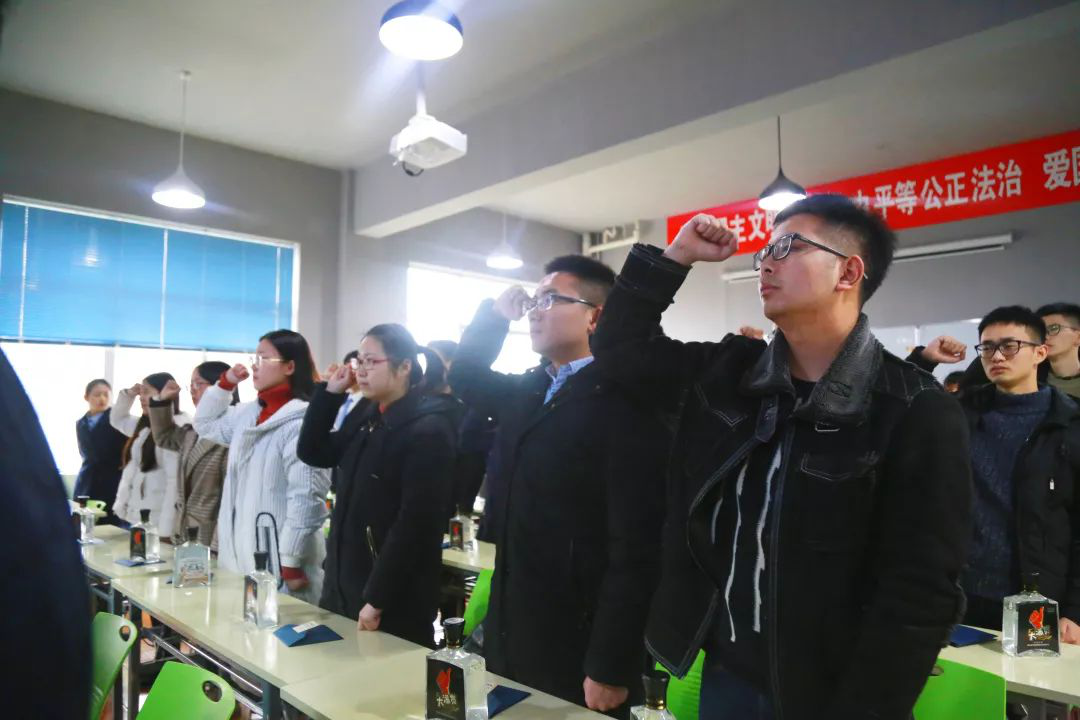 44名学员在菁英班导师、白酒营销专家杨海宏和青苗班导师、人力资源专家马宏飞的带领下,庄严宣誓:毕生铭记“淡泊明志,宁静致远”的校训,精研学识,敏思笃行,宽容博爱,敢为人先,胸怀敬畏之心,热爱和追求真理,荣校益人,传承百年文化,振兴一方产业,一生致力于做一个高尚、纯粹、勇于追梦的奋斗者。