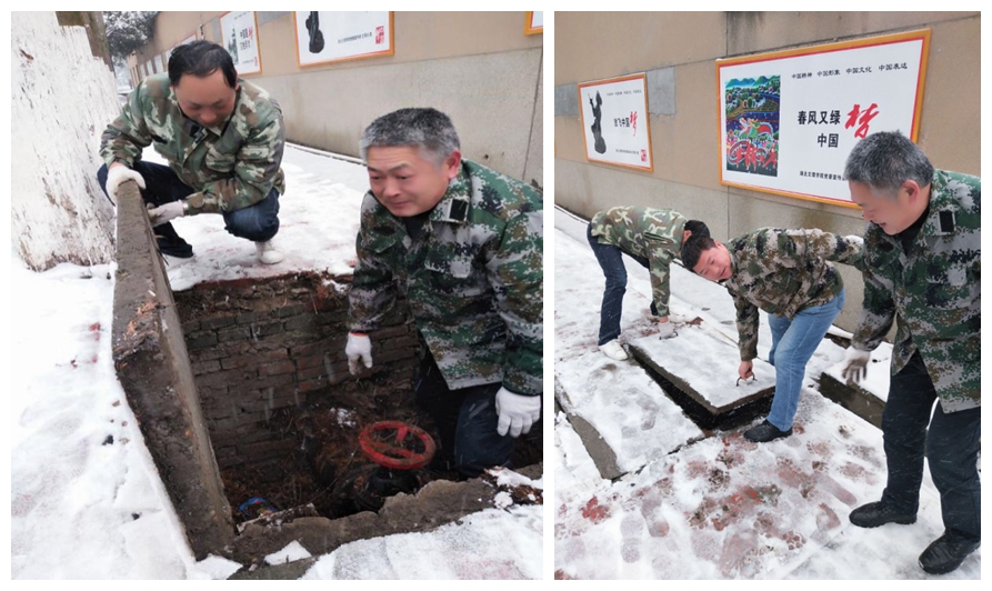 (后勤保障与资产管理部 通讯员 李群医)2019年第一场雪悄然而至,为及时应对雨雪冰冻天气,1月9日上午,后保部水电中心对全校供水管网及阀门再次进行巡查,做好水电保障。