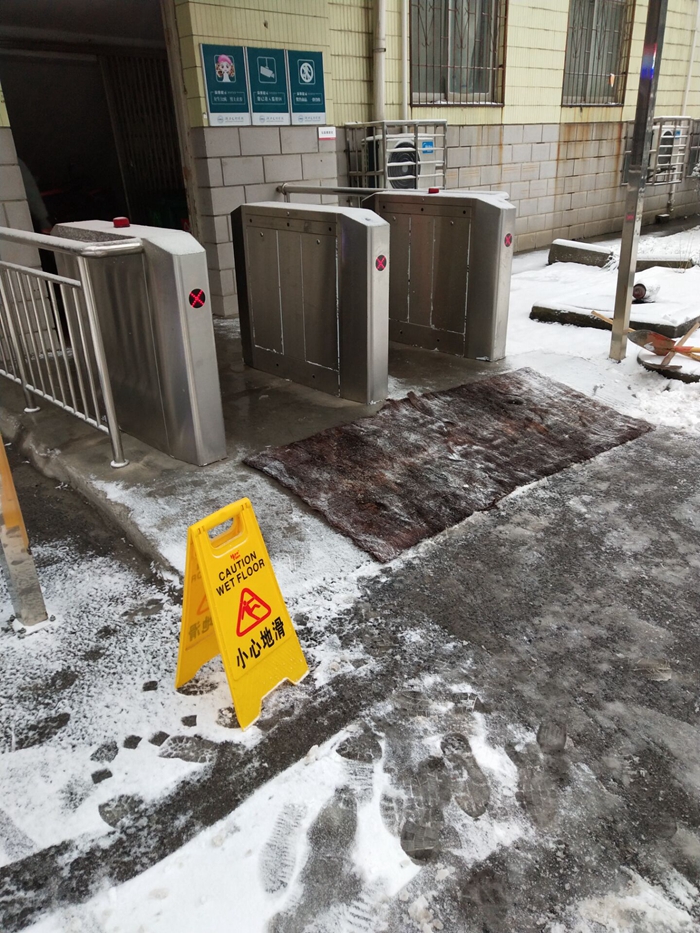 早上6:30分,后保部公寓中心全体职工第一时间清扫门前积雪,铺设防滑草垫,放置小心地滑提示牌,做好防滑工作。截止7:30,公寓中心一共出动了30多人次,已经清扫完所有公寓门前和主干道上的积雪和结冰。