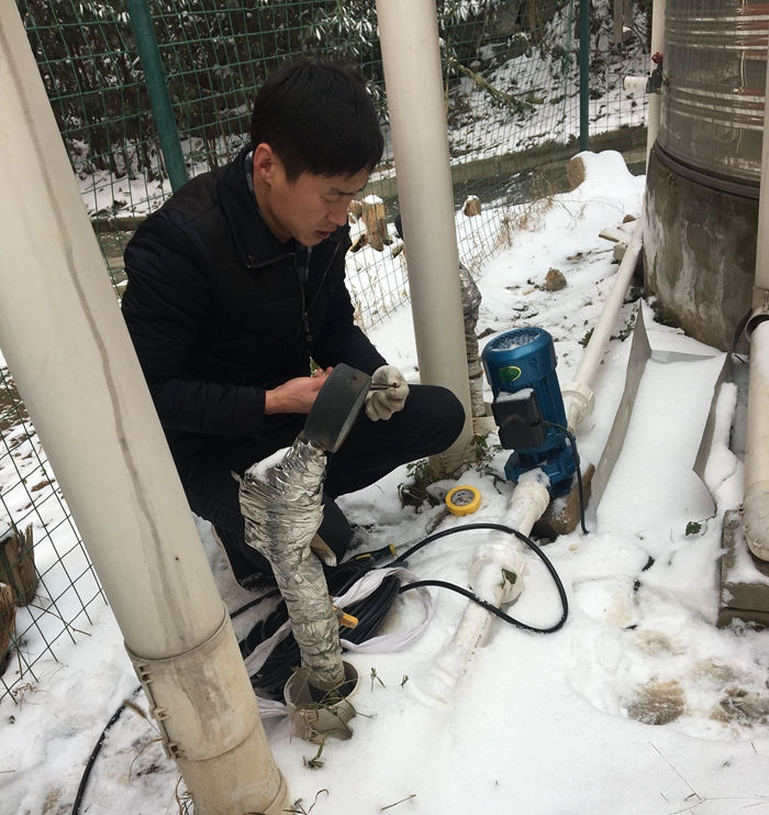 宁致公司开水热水项目部加强机组设施设备检查,防范低温雨雪天气引起的需量上升和设备故障,对南北校区生活区域室外水管进行防冻包扎,保证开水、热水正常供应。
