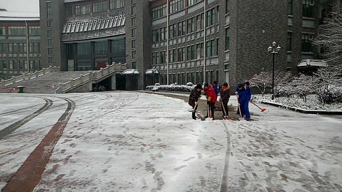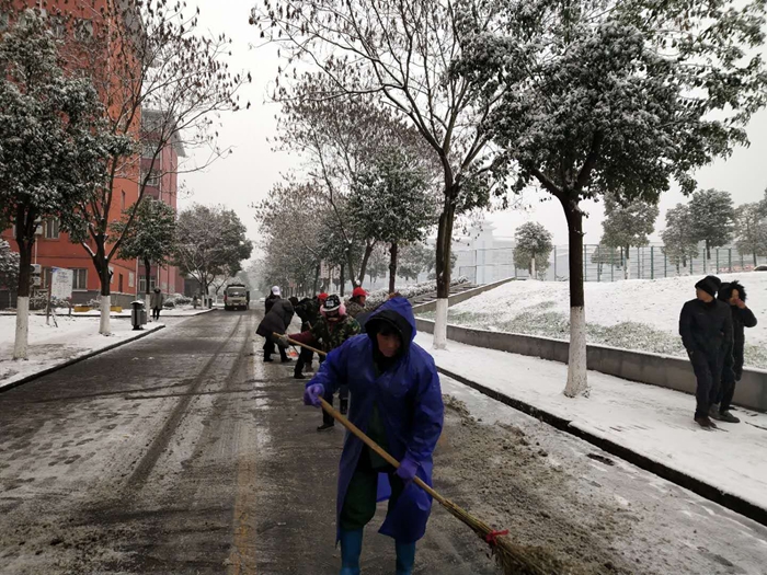 纷纷扬扬的大雪让校园变成童话世界,校园里整洁干净、畅通无阻,学校教学工作和师生生活正常开展的背后,是后勤保障服务部门的精细化管理,是工作人员寒风大雪中的“浴雪奋战”。(图片由通讯员提供)