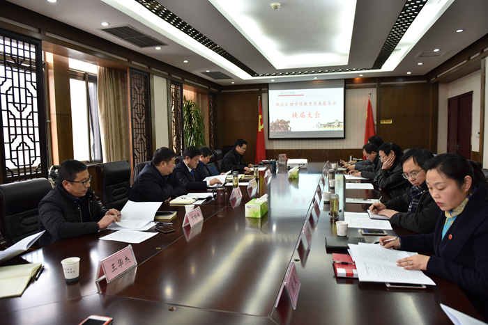 (学校办公室 通讯员 陆茵)12月29日下午,湖北文理学院教育发展基金会理事会在致远楼二议室召开换届大会。党委书记唐峻、校长丁世学、副校长刘伦钊、校长助理曹健出席会议。基金会第三届、第四届理事会理事、监事及其委托人参加了会议。
