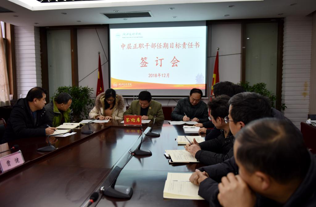 (发规处 通讯员 张彦林)12月26日下午,学校在致远楼第三会议室举行新一届中层正职干部任期目标责任书签订仪式。校领导、全体中层正职干部参加会议。会议由副校长刘伦钊主持。