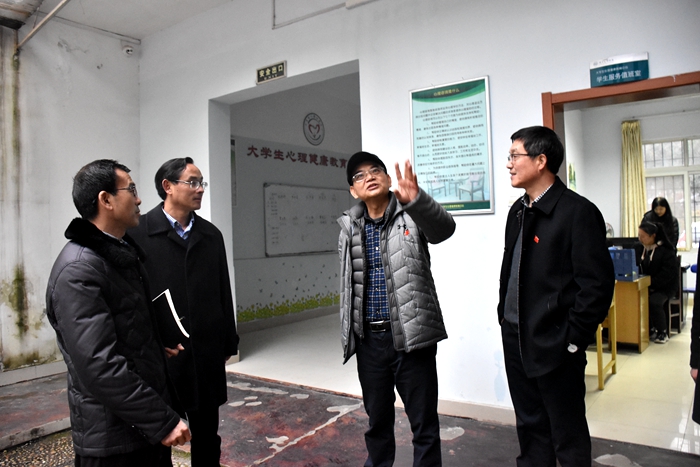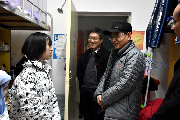 唐峻一行先后来到门卫室、食堂、学生宿舍、心理健康中心、校医院、学工处团委办公室、隆中家属区检查创文工作。