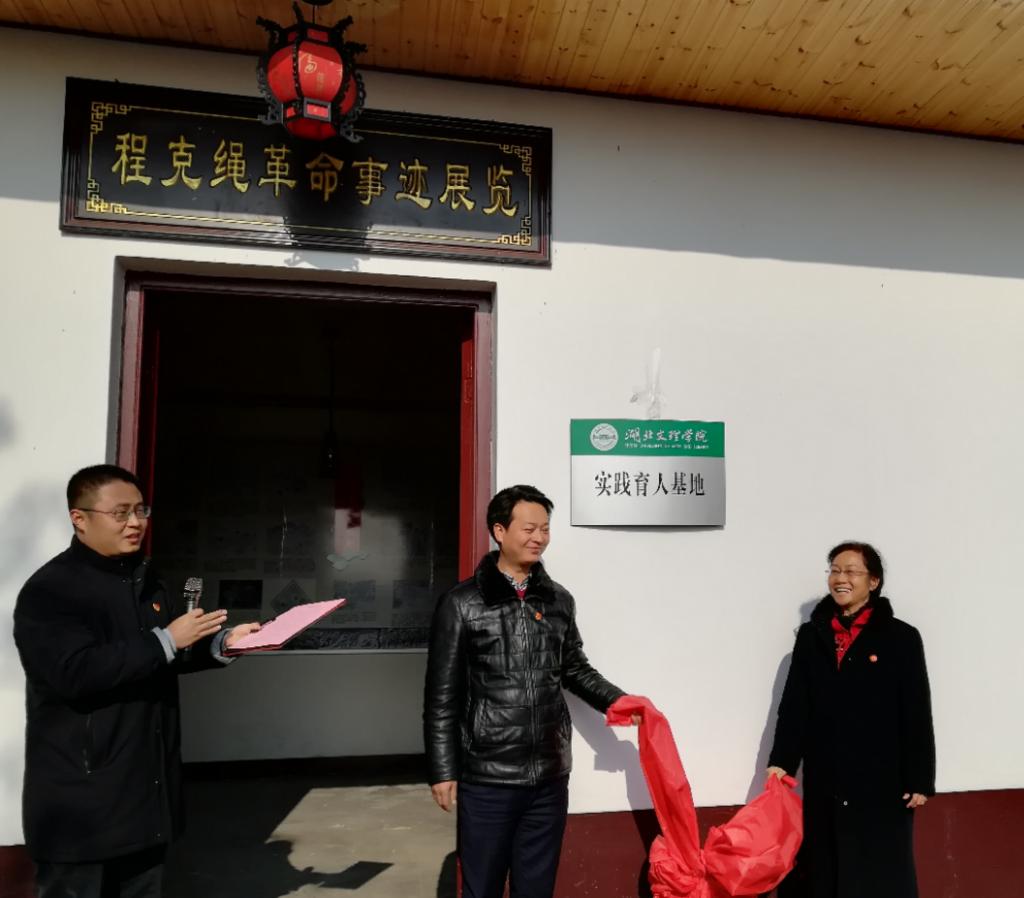 (政法学院 通讯员 秦春蕾)12月16日,“湖北文理学院红色文化实践育人基地”揭牌仪式在枣阳市琚湾镇程克绳故居举行,纪委书记宋双伟,枣阳市委常委、组织部长黄俊出席揭牌仪式。仪式由马克思主义学院、政法学院党委书记王礼刚主持,马克思主义学院、政法学院教师参加活动。