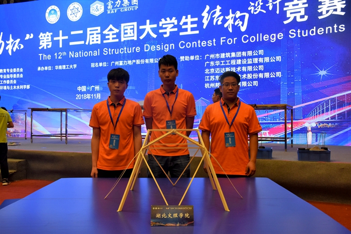(土建学院 教工通讯员 范建辉 大通社记者 陈 静 )11月7日至11日,2018年“富力杯”第十二届全国大学生结构设计竞赛在华南理工大学举行,我校土木工程与建筑学院学生齐立宇、闫慧才、邓博组成参赛队,在带队老师徐福卫、指导老师范建辉的带领下,从来自全国107所高校的108支参赛队伍中脱颖而出,成绩居全国第六名,荣获一等奖。全国大学生结构设计竞赛是我国土木工程学科培养大学生创新意识、合作精神和工程实践能力的最高水平的学科性竞赛(最早的全国性9大学科竞赛项目之一、国家级A类),被誉为“土木皇冠上最璀璨的明珠”。
