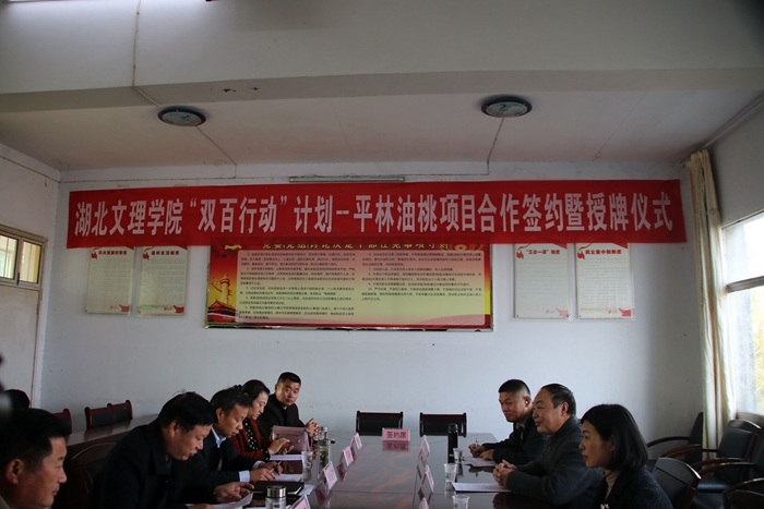(文学与传媒学院 通讯员 钟凯龙)11月28日上午,文传学院党委书记李定清、项目负责人姜小凌教授及团队成员一行,赴枣阳市平林镇举行“双百行动计划”项目合作签约暨授牌仪式。平林镇党委副书记、镇长邱里柱出席签约仪式,平林镇党委副书记张成功主持会议。