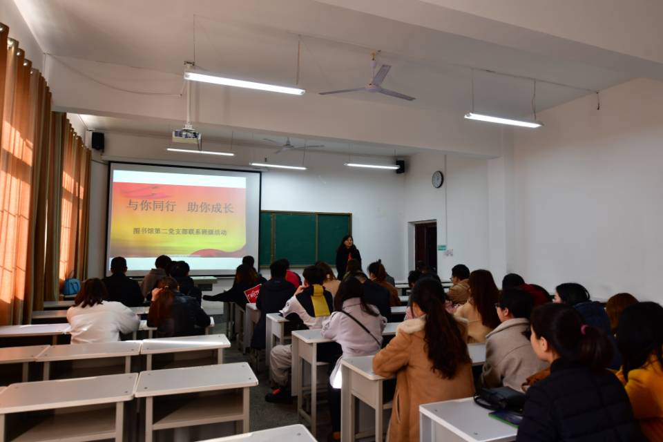 (图书馆 通讯员 朱华琴)为贯彻落实全国教育大会精神,助力“协同育人337工程”实施,11月8日下午,图书馆第二党支部全体党员到美术学院环境设计专业1611班、1612班开展“与你同行 助你成长”活动。