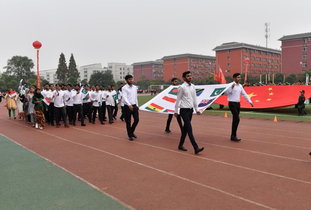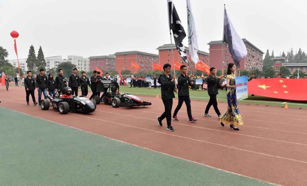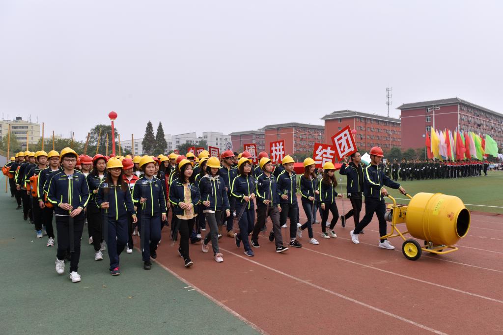 开幕式现场,国旗护卫队、彩旗方队、裁判员方队、教职工方队和二级学院代表队依次入场。各二级学院方队依托学院特色,纷纷展示独特风采:建工学院代表队头戴安全帽、手握测量仪;食化学院代表队高举化学方程式标牌;资环学院代表队举着地图和地球仪;医学院代表队身着白大褂;国际教育学院留学生代表队挥舞着自己国家的国旗;文学院代表队手握摄影器材;美术学院代表队以动漫造型人物领队;计算机工程学院代表队手举计算机代码牌;交通学院代表队驾驶自己设计制作的运动汽车……