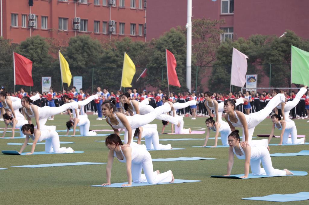 随后,广播体操表演、舞龙表演、啦啦操、健美操、拉丁舞、扇子舞等相继上演,共同祝贺第二十一届田径运动会取得圆满成功。