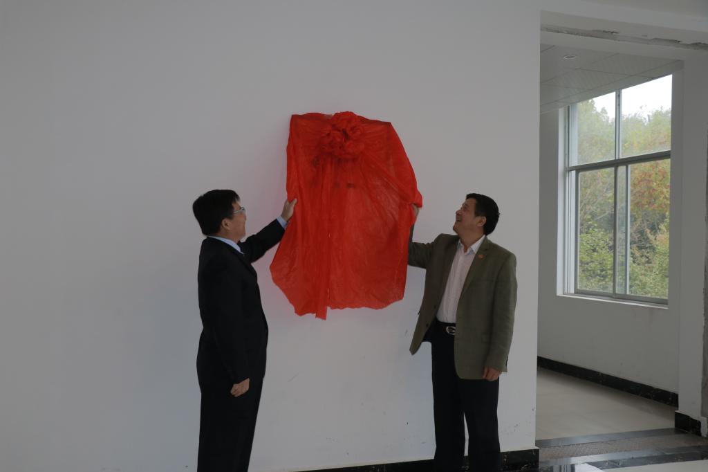 丁世学(右一)与胡宝祥为汉江融媒体学院揭牌