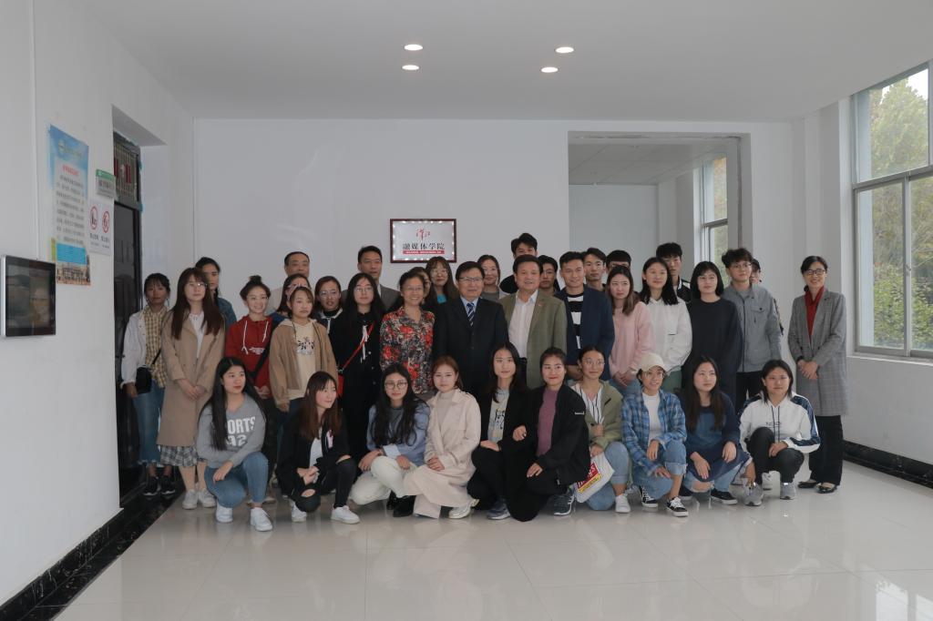丁世学与胡宝祥共同为汉江融媒体学院揭牌。丁世学对胡宝祥、职战新的到来表示欢迎,对汉江融媒体学院的成立表示祝贺。丁世学指出,汉江融媒体学院的成立对学校的专业建设和人才培养工作具有积极的推动作用,意义重大。丁世学表示,汉江融媒体学院共建单位师资力量强大,广大学生尤其是新闻专业的学生,能通过这个平台得到很好的锻炼。丁世学要求,文传学院要充分利用资源和平台,借助共建单位的力量,把专业建设好、把人才培养好。