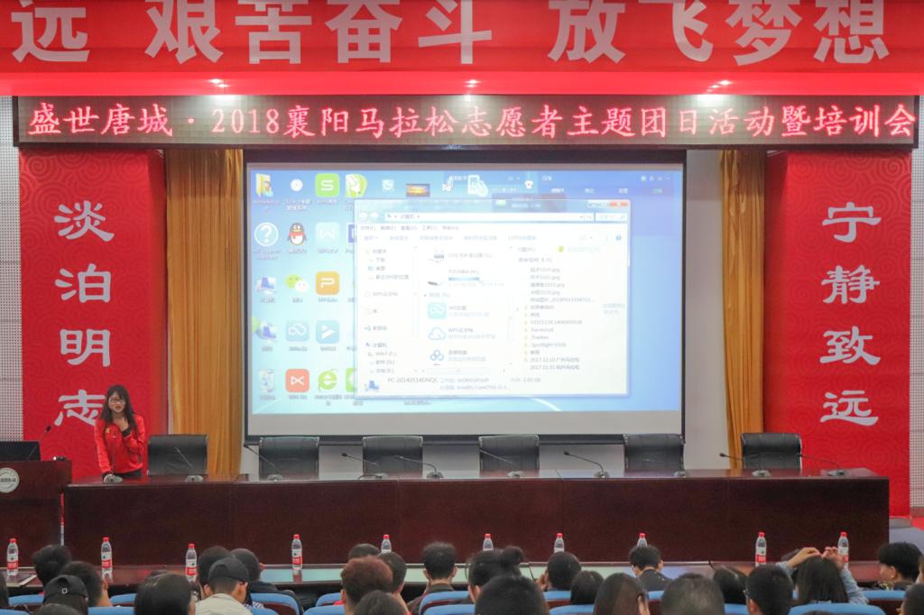 赛事组委会吴瑞和老师给竞赛志愿者从志愿服务规范、志愿服务工作秩序和志愿服务应急处理三方面提出了赛事服务要求,并对2018襄阳马拉松有关情况和我校全体志愿者的负责区域及职责划分进行了详细介绍。