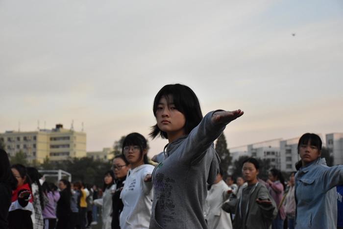 清晨六点半,伴着激昂的进行曲,运动场上的一伸一曲,矫健的步子,焕发的都是青春的力量。