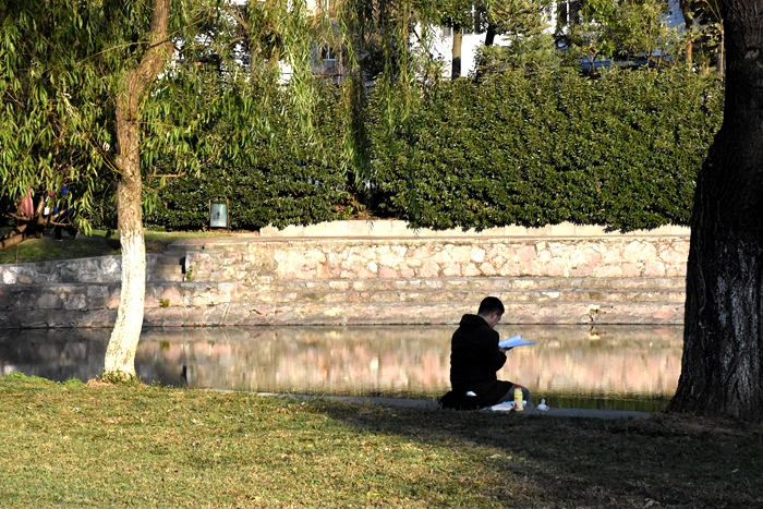 编者按:“刻苦读书 坚持锻炼 建设强国 复兴中华 ”是学校对学生提出的新要求,目前,校园内读书、锻炼、做公益的氛围日趋浓厚,清晨六点半,运动场上的早起锻炼学生熙熙攘攘;七点,图书馆内、淡泊湖边、卧龙广场上书声琅琅;八点,整齐收纳在手机袋的手机,让学生心无旁骛;晚上、周末,学生走出校园,进社区、进乡村做公益。