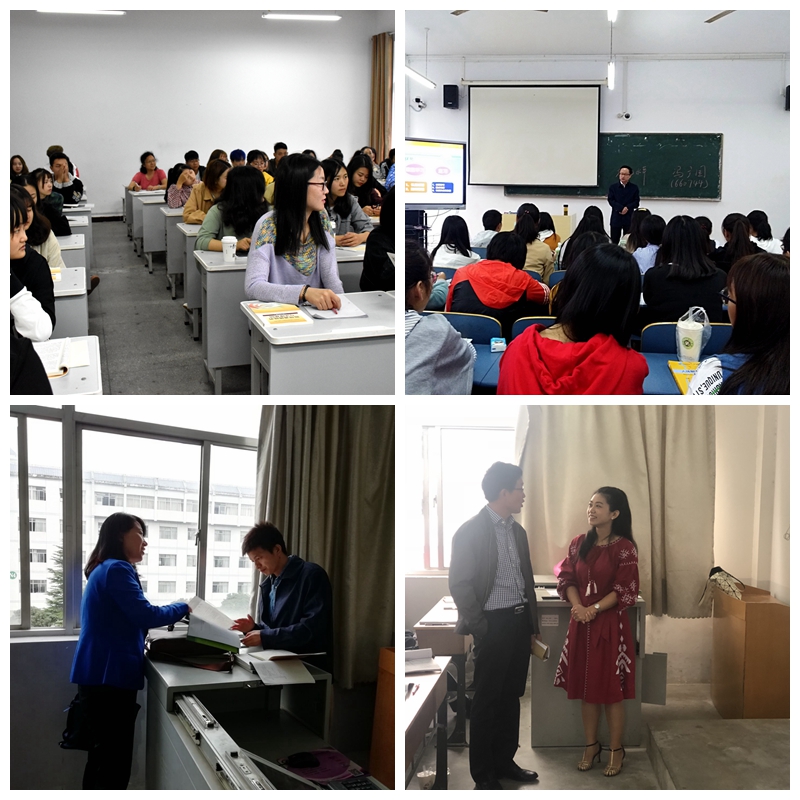 “高数学习比较难,要通过各种渠道了解新生的水平,因材施教;要调动学生的学习兴趣与积极性,让他们主动学习;要把高数学习与他们的专业学习结合起来,让高数更贴近学生”,丁世学与赵秀菊交流时说道。“老师全英语教学你们能适应吗?不仅仅要听得懂,更要会说会写!”在与学生交流时,丁世学给学生提出要求。