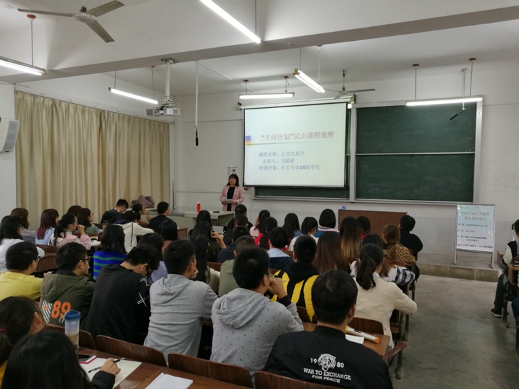 (教务处 通讯员 胡丹)为贯彻落实新时代全国高等学校本科教育工作会议精神和全国教育大会精神,推动课堂教学革命,积极引导学生主动学习,提高学习效率,提升自主学习能力,同时,也为了使广大教师了解课程课堂教学“千问计划”的运行及实施方式,进一步深化课堂教学方式、方法改革,教务处于9月26日下午在N4-201教室开展了第一期教学工作坊活动:《公共关系学》课堂教学“千问计划”现场观摩会,政法学院教师马国瑾在社会工作专业1711班、1712班实施观摩会。副校长汪云、各二级学院分管教学副院长、有关课程教师、校教学督导员等近百人参加观摩会。
