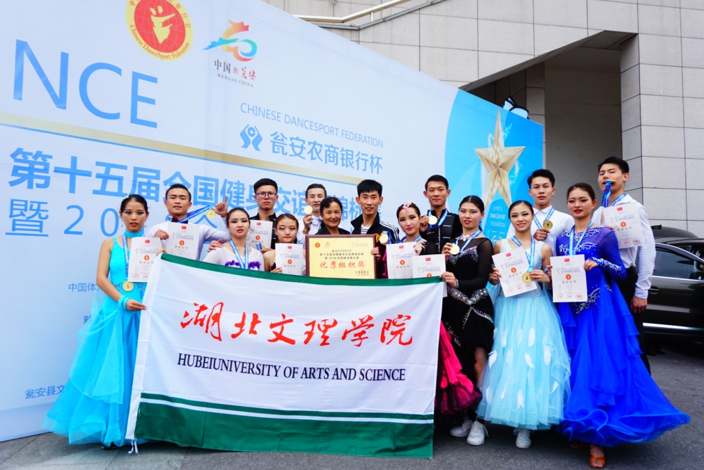 (体育学院 通讯员 林万雷)9月22日至9月23日,由中国体育舞蹈联合会主办,贵州省体育局、黔南州人民政府承办的“第十五届全国健身交谊舞锦标赛暨2018全国健身舞大赛”在贵州省瓮安县体育馆举行,我校体育学院教师林万雷、许志琳带领的13名学生参加全能精英公开组竞争,荣获4项第一名,4项第二名和1项三等奖,学生安率、文惠、宫凡、杨书樊、张开鑫、杨丽茜荣获普通院校全能精英A组金奖,我校被大赛组委会授于优秀组织奖!