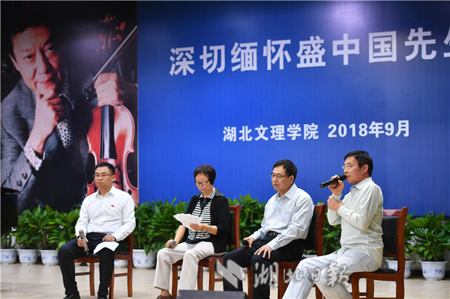 9月19日,襄阳,湖北文理学院音乐学院,乐声绕梁彩蝶纷飞。一代音乐大师盛中国追思会上,妻子濑田裕子深情地说:“我的那个他啊,化蝶而去了。”(湖北日报全媒记者田悦摄)