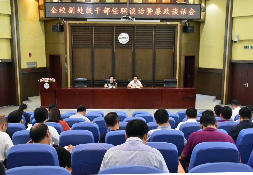 王为一对全体副处级干部作任职谈话。王为一要求,全校干部要坚定信念,对标习近平总书记选人用人“标尺”,始终贯彻好干部“五项标准”。