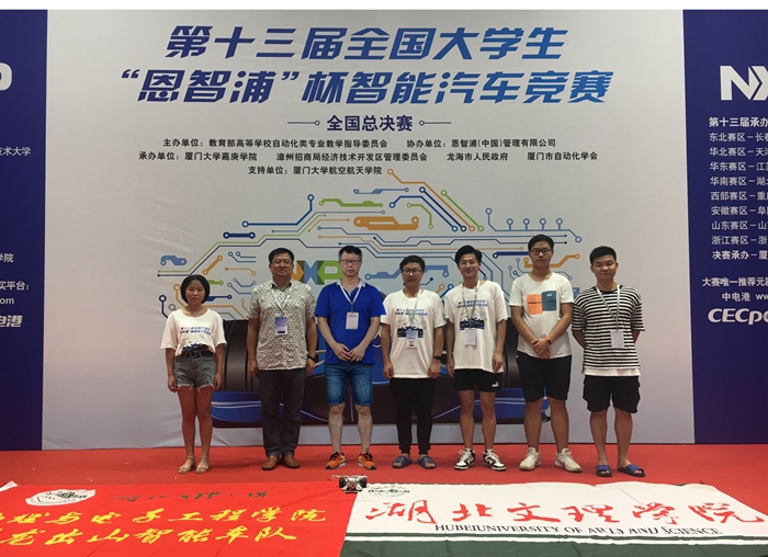 7月26日至29日,第十三届全国大学生“恩智浦”杯智能汽车竞赛华南赛区预选赛在湖北工程学院举行,由来自湖北、湖南、福建、广东等地100所高校、近1500名选手参赛。经过激烈的预赛和决赛角逐,我校物电学院、交通学院参赛队获得一等奖1项、二等奖3项,优胜奖1项。全国总决赛于8月22日-25日在厦门大学举行,来自全国153所高校的348支队伍的1620余名师生参加了总决赛, 我校胡安正和王培元老师指导,由16级自动化学生张梁山和16级电工学生方诗镪、廖佳雯组成的“湖文明志一队”取得全国二等奖,并在首次新增的户外公路挑战赛中获得全国三等奖的好成绩。