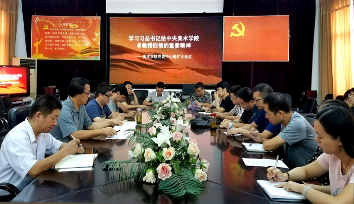 (美术学院 通讯员 杜鹏飞)9月1日上午,美术学院召开党委中心组扩大会议,学习贯彻习近平总书记给中央美术学院老教授回信的重要精神。院领导班子成员、教授、博士代表、各系(部)主任和学生代表参加会议。会议由美术学院党委书记黄有柱主持。